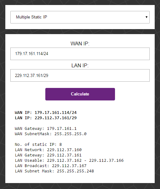 static IP requires both WAN and LAN IP addresses. The number after the slash for the WAN IP is likely "24" (needs confirmation)